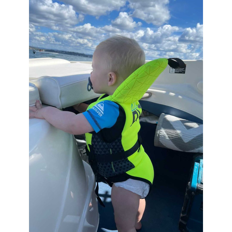 Constructed with Flex Lite Ultra Neoprene and highest-quality PVC foam, this jacket is comfortable and durable. It is certified to Australian Standards AS4758 and features a 2 buckle design, neoprene safety pillow, and comfortable wide neoprene padded safety strap under crotch strap to prevent the vest from riding up. Whether you're on a personal watercraft, boat, kayak, wakeboarding, wake surfing, or water skiing, this life jacket is a must-have for your little one.